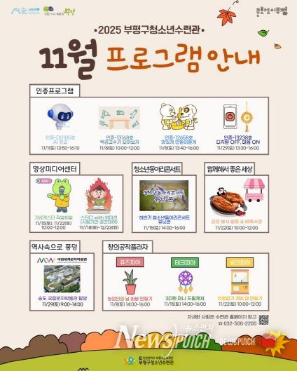 뉴스펀치 김길룡 기자 | 부평구 청소년수련관은 11월에도 다채로운 체험형·진로탐색형 프로그램을 운영한다고 밝혔다.
