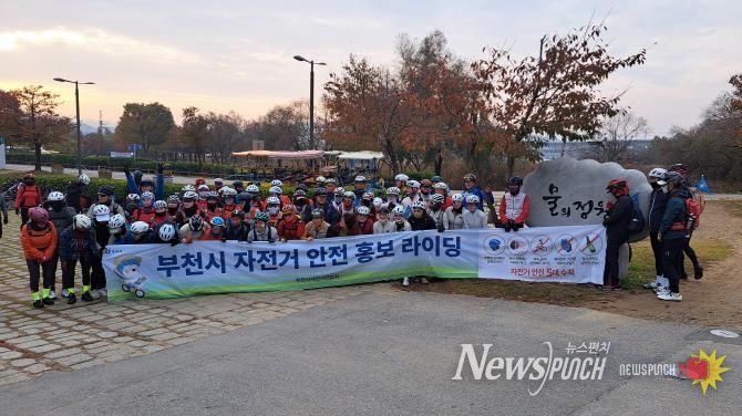 뉴스펀치 김길룡 기자 | 부천시는 10월 30일 부천시자전거연합회 주관으로 남양주시 물의정원에서 여주시 강천보 인증센터까지 이어지는 남한강 자전거길(편도 58km) 구간에서 ‘자전거 안전 홍보 라이딩’ 행사를 열었다.