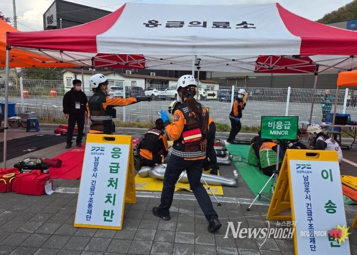 뉴스펀치 김길룡 기자 | 남양주시는 10월 31일 수동면 오뚜기물류서비스남양주 안전물류센터에서 실시된 2025년 재난대응 안전한국훈련에 참여해 ‘현장응급의료소’를 설치·운영했다고 밝혔다.
