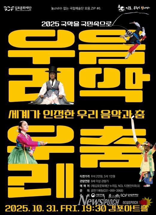 뉴스펀치 김길룡 기자 | (재)김포문화재단은 지난 10월 31일 오후 7시 30분, 김포아트홀에서 개최한 국립국악원 '세계가 인정한 우리음악과 춤' 공연이 관객의 호응 속에 성료하며 2025년 김포아트홀의 국립예술단 모음 시리즈의 막을 내렸다고 밝혔다.