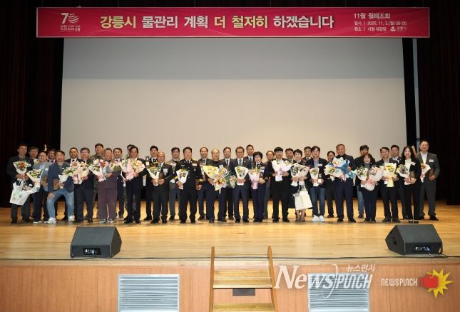 뉴스펀치 김길룡 기자 | 강릉시는 3일 오전 9시, 시청 2층 대강당에서 11월 월례조회를 개최하고, 가뭄극복에 기여한 유공자 포상과 함께 앞으로 철저한 물관리와 재난 대응 의지를 다짐하는 자리를 마련한다.