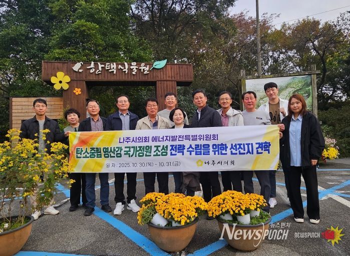 뉴스펀치 김윤걸 기자 | 나주시의회 에너지발전특별위원회(위원장 김강정)는 지난 10월 30일부터 31일까지 용인시 한택식물원과 세종시 국립세종수목원을 방문해 ‘탄소중립 영산강 국가정원 조성 전략’ 수립을 위한 선진지 견학을 실시했다.