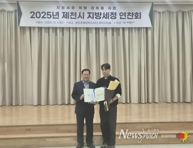 연구과제 발표 결과 “지속가능한 관광발전을 위한 관광세 도입 방안”을 발표한 세무과 세무9급 최주호주무관이 최우수를 차지하는 영예를 얻었으며, 최우수 수상자는 2026년 개최되는 충청북도 주관 지방세정 연찬회 제천시 대표로 참가하게 된다.