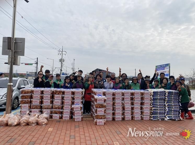뉴스펀치 김길룡 기자 | 파주시 월롱면 새마을협의회와 새마을부녀회는 지난 31일, 관내 기업과 함께 ‘이웃사랑 김장김치·쌀 나눔’행사를 개최했다.