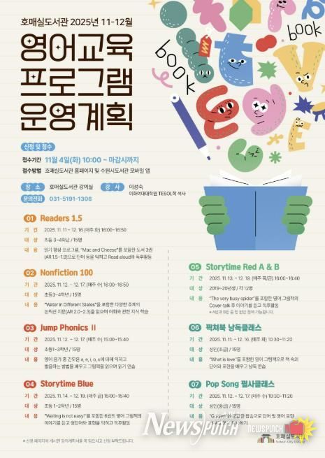 뉴스펀치 김길룡 기자 | 수원시 호매실도서관이 11~12월 운영하는 영어교육 프로그램 참가자를 모집한다.