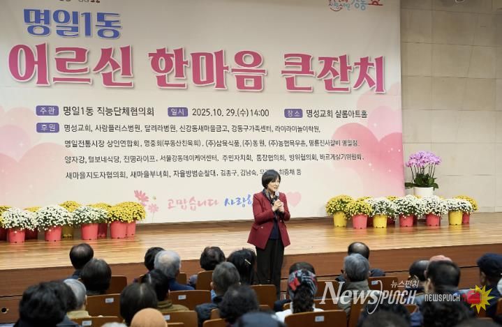 뉴스펀치 김완규 기자 | 서울 강동구 명일1동은 지난 10월 29일 명성교회 샬롬아트홀에서 관내 어르신 250여 명을 모시고, ‘명일1동 어르신 한마음 큰잔치’를 성황리에 개최했다고 밝혔다.
