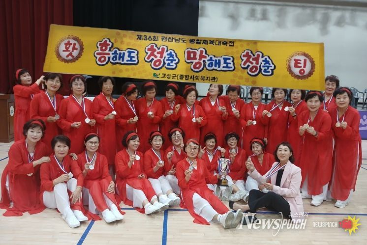 뉴스펀치 김길룡 기자 | 고성군에서 운영 중인 고성군종합사회복지관 주민강좌 라인댄스반이 지난 11월 1일, 밀양시 밀양문화체육회관에서 열린 제36회 경상남도 생활체육대축전에 고성군 대표로 출전해 ‘어르신 체조’ 부문에서 군부 2위를 수상했다.