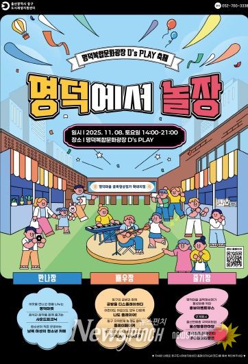 뉴스펀치 김길룡 기자 | 울산 동구 도시재생지원센터는 오는 11월 8일 오후 2시부터 저녁 9시까지 명덕복합문화광장(동구 명덕6길 38)에서 명덕복합문화광장 D’s PLAY 축제 ‘명덕에서 놀장’을 개최한다.