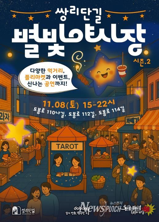 뉴스펀치 김완규 기자 | 서울 도봉구가 오는 11월 8일 쌍리단길(도봉로 112길, 114길 일대)에서 ‘쌍리단길 별빛야시장’을 개최한다.