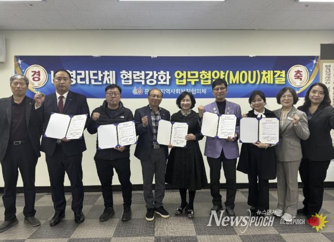 뉴스펀치 김길룡 기자 | 문경시지역사회보장협의체는 지난 3일 협의체 사무국에서 점촌중앙라이온스클럽, 점촌이화라이온스클럽, 점촌라이온스클럽, 점촌청년회의소와 비영리단체 협력 강화를 위한 업무협약(MOU)을 체결했다.
