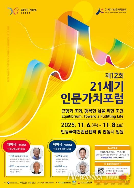 뉴스펀치 김길룡 기자 | 문화체육관광부, 경상북도, 안동시가 공동 주최하고 한국정신문화재단이 주관하는 ‘제12회 21세기 인문가치포럼’이 11월 6일부터 8일까지 3일간 안동국제컨벤션센터(ADCO)와 안동시 일원에서 열린다.