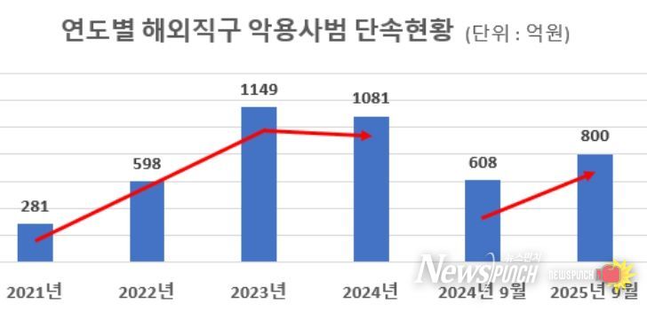 이는 전년동기대비(2024년 1월~9월 608억 원) 32% 증가한 수치로, 관세청은 그동안 적극적인 단속에도 불구하고 해외직구 악용 범죄가 지속 발생함에 따라 이번 특별단속을 기획하게 됐다고 밝혔다.