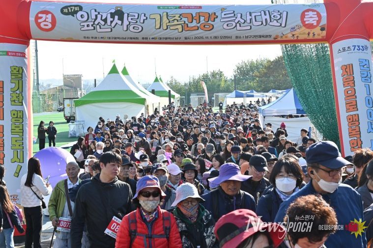 뉴스펀치 조평훈 기자 | 대구 남구는 남구체육회(회장 권복만) 주최·주관으로 지난 1일 오전 8시부터 구민체육광장에서 ‘제17회 앞산사랑 가족건강 등산대회’를 개최했다고 밝혔다. 이번 대회에는 약 2,000명의 구민이 참여하여 청량한 가을 아침을 만끽하며 뜻깊은 시간을 보냈다.