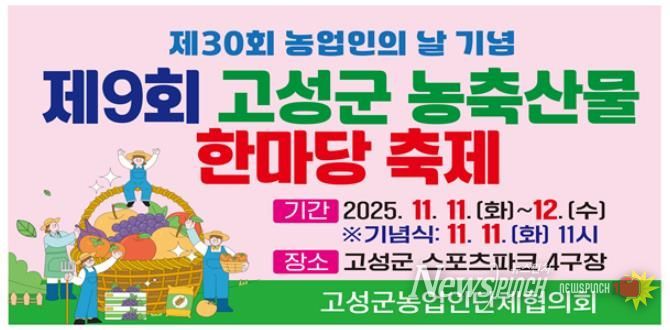 뉴스펀치 김길룡 기자 | 고성군은 11월 11일부터 12일까지 고성군스포츠타운 4구장에서 ‘제30회 농업인의 날 기념, 제9회 고성군 농축산물 한마당 축제’를 개최한다.
