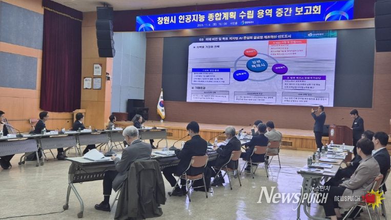 뉴스펀치 김길룡 기자 | 창원특례시는 4일 시청 시민홀에서 ‘인공지능 종합계획 수립’ 용역 중간보고회를 개최하고, 본격적으로 “AI 대전환” 시대를 선도하기 위한 창원 특화형 AI가 나아갈 구체적인 전략을 논의했다고 밝혔다.