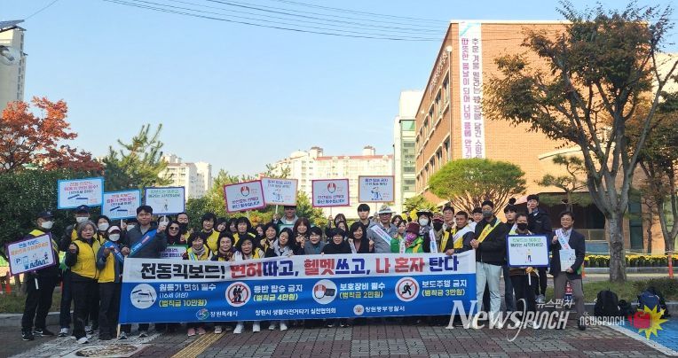 뉴스펀치 김길룡 기자 | 창원특례시는 5일 개인형 이동장치(PM)의 이용수칙과 안전의식 제고를 위하여 용호고등학교, 창원중앙고등학교 등교시간에 캠페인을 실시했다.