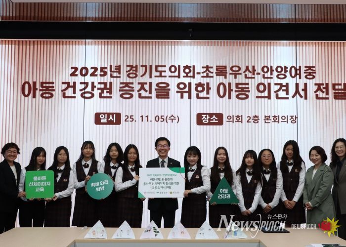 뉴스펀치 김길룡 기자 | 경기도의회 김근용 의원(국민의힘, 평택6)은 5일 경기도의회 예담채에서 열린 ‘아동 건강권 증진 및 올바른 신체이미지 형성을 위한 아동 의견 전달식’에 참석해, 안양여자중학교 학생들로부터 직접 의견서를 전달받고 청소년들과 간담회를 진행했다.