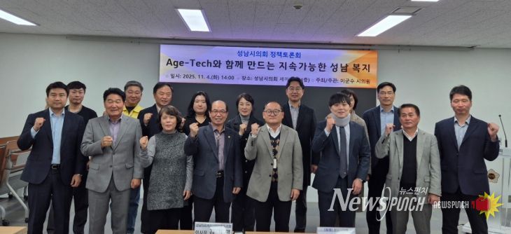 뉴스펀치 김길룡 기자 | 성남시의회 이군수 의원(신흥2·신흥3·단대동)은 지난 4일 성남시의회 세미나실에서 'Age-Tech와 함께 만드는 지속가능한 성남 복지' 정책토론회를 개최하고, 기술과 복지가 융합된 지역 복지정책의 미래 방향을 제시했다.