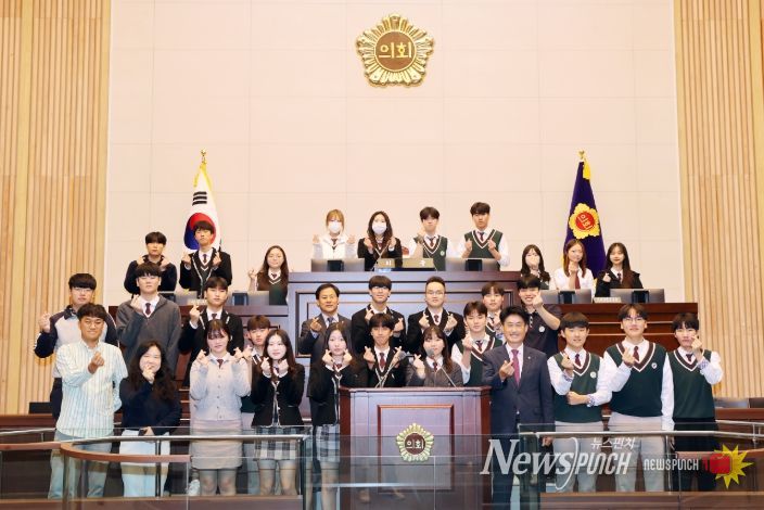 뉴스펀치 김길룡 기자 | 충북도의회는 5일 본회의장에서 진천서전고등학교 학생 32명이 참여한 가운데 제129회 청소년 의회교실을 진행했다.