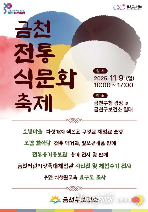 뉴스펀치 김완규 기자 | 금천구는 구의 장독대 문화를 알리고 건강도시 금천을 실현하기 위한 ‘제1회 금천전통식문화축제’가 9일 금천구청 광장 및 금천구보건소 일대에서 열린다고 밝혔다.