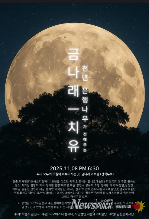 뉴스펀치 김완규 기자 | 금천구는 금천구민들을 위한 지역공감 창작음악극 공연 ‘금나래’를 8일 금나래 아트홀에서 선보인다고 밝혔다.