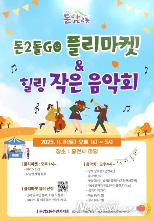 뉴스펀치 김완규 기자 | 서울 성북구 돈암2동 주민자치회는 오는 11월 8일 오후 1시, 흥천사 마당에서 지역 주민이 함께하는 ‘2025 돈2돌GO 플리마켓·열린 작은음악회’를 개최한다.