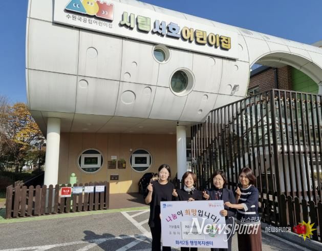 뉴스펀치 김길룡 기자 | 수원시 팔달구 화서2동에 위치한 시립서호어린이집은 다가오는 추운 겨울을 앞두고 관내 도움이 필요한 어려운 이웃들에게 따뜻한 마음을 전하기 위해 지난 5일 화서2동 행정복지센터에 성금을 전달했다.