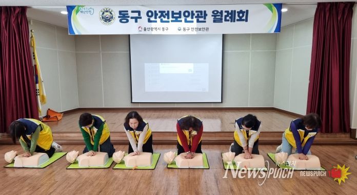 뉴스펀치 김길룡 기자 | 울산 동구는 동구 안전보안관(대표 고이곤)과 함께 11월 6일 오전 10시 전하2동 행정복지센터 회의실에서 동구생활안전체험센터의 ‘찾아가는 심폐소생술 교육’을 체험하고 동울산종합시장 일원에서 동절기 대비 화재예방 캠페인을 실시했다.