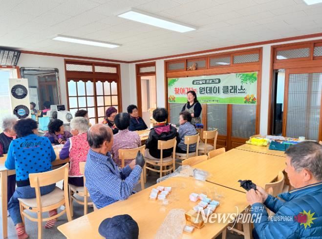 정영랑 주민생활과장은 “이번 찾아가는 원데이클래스는 마을 주민들이 가까운 장소에서 쉽게 참여할 수 있는 체험형 여가 프로그램으로, 정서적 교류와 삶의 활력 증진에 도움이 될 것으로 기대한다”라며, “앞으로도 군은 지역 곳곳에서 주민의 삶의 질을 높이는 다양한 생활복지 프로그램을 지속적으로 운영해 나가겠다”라고 전했다.