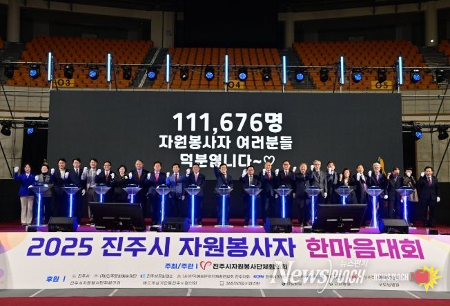 뉴스펀치 김길룡 기자 | 진주시 자원봉사단체협의회(회장 심명환)는 6일 진주실내체육관에서 자원봉사자와 시민 등 2300여 명이 참석한 가운데 ‘2025 진주시 자원봉사자의 날 기념 한마음대회’를 성황리에 개최했다.