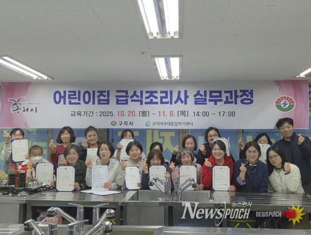 뉴스펀치 김길룡 기자 | 구리시는 11월 6일 ‘어린이집 급식 조리사 실무과정’ 직업교육훈련 수료식을 개최하고 16명의 수료생을 배출했다고 밝혔다.
