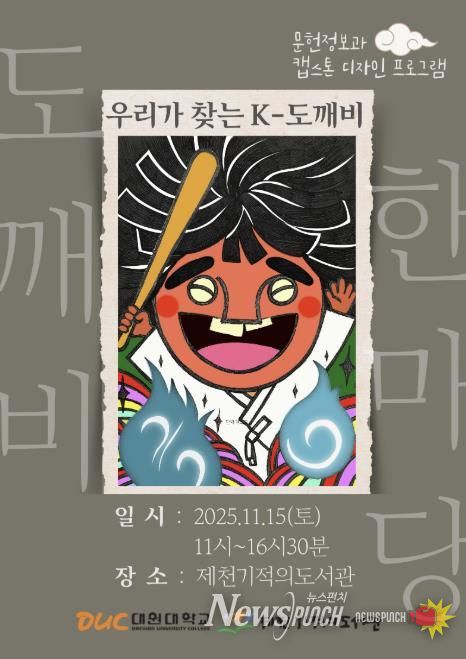 뉴스펀치 김길룡 기자 | 제천기적의도서관과 대원대학교 문헌정보과는 오는 11월 15일 오전 11시부터 도서관 앞마당에서‘도깨비 한마당 : 우리가 찾는 K-도깨비’행사를 개최한다고 밝혔다.