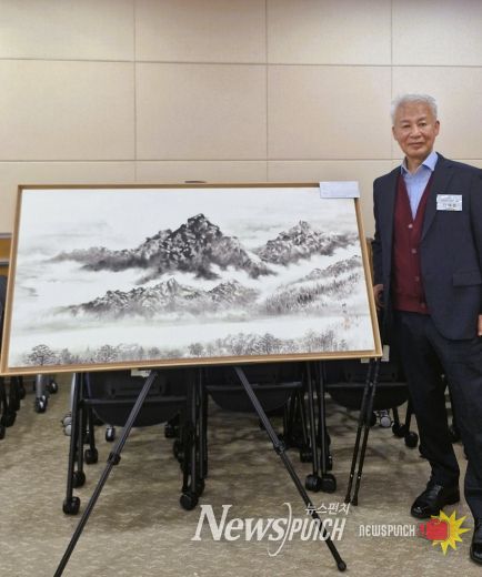 김재훈 실장이 대상을 받은 작품은 ‘동학산 소견’으로, 자신이 거주하는 달성군 가창면의 풍경을 그린 한국화다. 물안개가 피어오르는 아침의 동학산을 섬세한 필치로 담아낸 작품으로, 마치 사진처럼 생생하면서도 몽환적인 분위기로 심사위원들의 호평을 받았다.