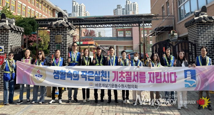 뉴스펀치 김길룡 기자 | 수원시 영통구 바르게살기운동협의회는 지난 11월 7일, 매탄동 산남초등학교 앞에서 ‘기초질서 확립 캠페인’을 실시했다. 이는 일상 속에서 질서와 배려를 실천하는 시민 문화를 조성하고, 더불어 깨끗하고 안전한 생활환경을 만들어가기 위한 취지다.
