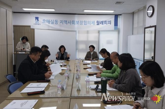 뉴스펀치 김길룡 기자 | 수원시 권선구 호매실동 지역사회보장협의체는 지난 6일, '2025년 11월 월례회의'를 개최했다. 이날 회의에서는 시·구·동정 홍보 사항을 안내하고, 사랑의 김장 나눔 행사 지원 및 사랑나눔수원 현판 전달, 사례대상자 지원에 대한 논의도 진행됐다.