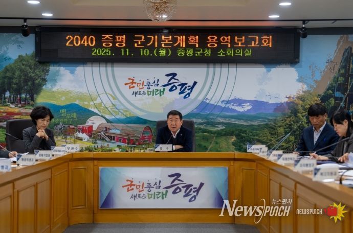 뉴스펀치 김길룡 기자 | 충북 증평군은 10일 군청 소회의실에서 ‘2040 증평 군기본계획 수립 용역보고회’를 개최했다.