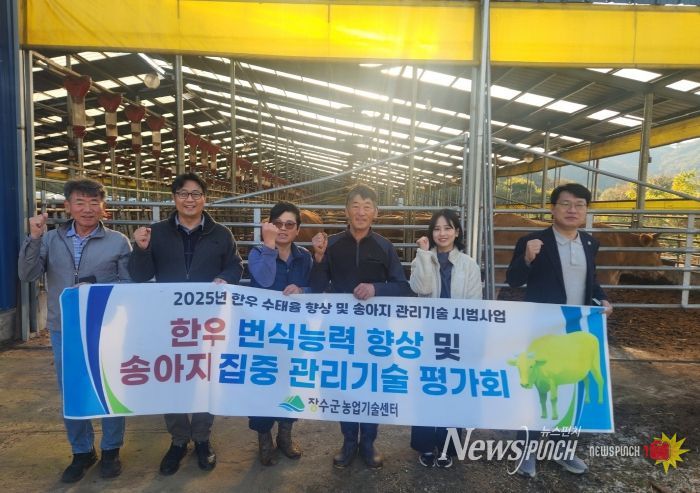 뉴스펀치 정홍균 기자 | 장수군은 농촌진흥청 축산 신기술 시범사업 일환으로 번암면 유정리 태화농장에서 축산농가와 축산 전문가, 관계 공무원 등 10여 명이 참석한 가운데 ‘한우 번식우 기반 확대 시범사업 성과공유 평가회’를 개최했다고 10일 밝혔다.