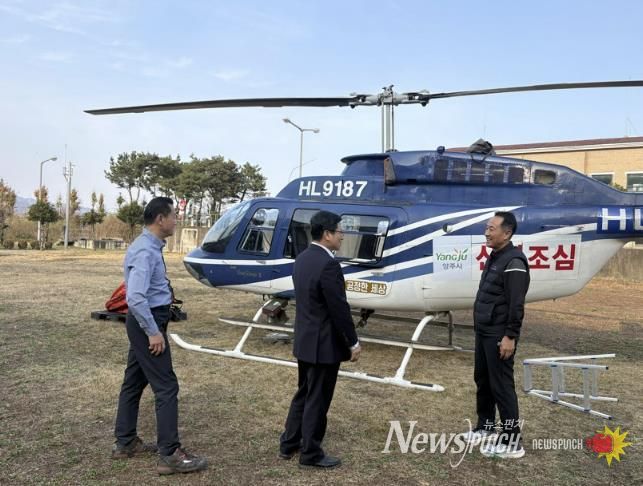 뉴스펀치 김길룡 기자 | 양주시 김정일 부시장이 최근 가을철 산불조심기간(10월 20일~12월 15일)을 맞아 산불진화용 임차헬기 계류장과 양주시 산불대응센터를 방문해 산불대비체계를 점검하고 관계자들을 격려했다.