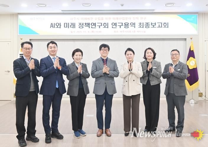 뉴스펀치 김길룡 기자 | 파주시의회 의원연구단체인 ‘AI와 미래 정책연구회’는 지난 6일 시의회 세미나실에서 '파주시 미래비전 수립을 위한 미래산업분야 정책연구' 최종보고회를 개최했다.