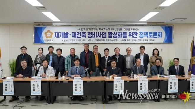 뉴스펀치 김길룡 기자 | 안양시의회 윤해동 의원(더불어민주당, 관양·달안·인덕원·부림동)은 11월 7일 시의회 소회의실에서 ‘재개발·재건축 정비사업 활성화를 위한 정책토론회’를 개최했다.