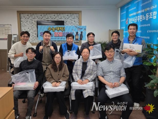 뉴스펀치 김길룡 기자 | 경산시공무원노동조합에서는 지난 7일 수험생 자녀가 있는 조합원 40여 명에게 “수능 합격 기원 찹쌀떡”과 함께 응원의 메시지를 전달했다.