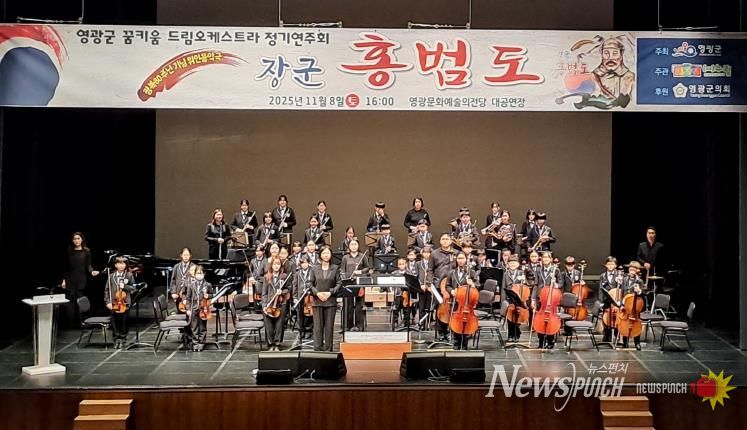 뉴스펀치 김길룡 기자 | 영광군은 11월 8일 영광문화예술의전당 대공연장에서 200여 명의 지역 아동과 가족, 군민이 모인 가운데 영광군 꿈키움드림오케스트라 정기 연주회 “장군 홍범도” 위인 음악극을 선보였다.