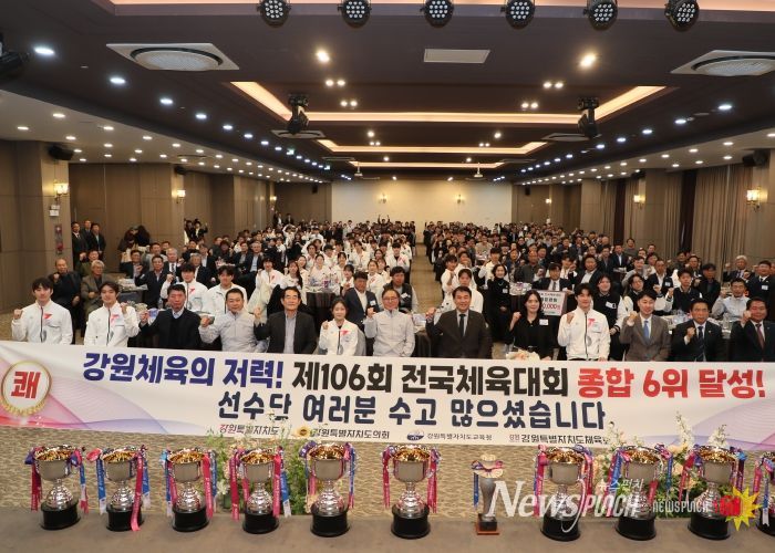 뉴스펀치 김길룡 기자 | 강원특별자치도는 11월 10일 오후 2시 20분 춘천 스카이컨벤션에서 제106회 전국체육대회 강원선수단 환영행사를 개최했다.