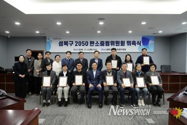 뉴스펀치 김완규 기자 | 서울시 성북구가 지난 11월 6일 구청 미래기획실에서 ‘2025년 성북구 2050 탄소중립위원회 위촉식 및 정례회’를 개최했다.