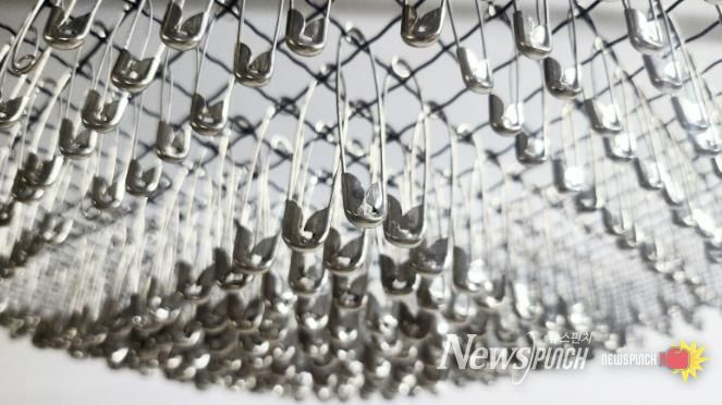 수천 개의 옷핀으로 구성된 설치 작업을 통해 ‘함께 있음’과 ‘연결의 의미’를 탐구한다.