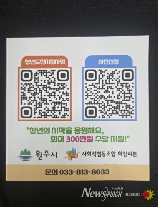 엄병국 원주시 기업지원일자리과장은 “지역 청년들을 응원하는 데 뜻을 함께해 주신 자영업자분들께 감사드린다”라며, “앞으로도 청년이 건강하게 성장하고 지역사회가 더욱 활기를 띨 수 있도록 원주시가 적극 지원하겠다”라고 말했다.