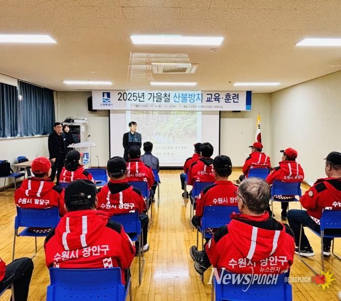 뉴스펀치 김길룡 기자 | 수원특례시가 10일 공원녹지사업소 대회의실에서 가을철 산불방지 교육·훈련을 했다.