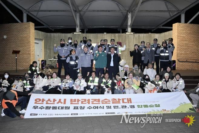 뉴스펀치 김길룡 기자 | 안산시는 지난 10일 상록구 부곡동 하트공원 인근 주택가에서 안산시 반려견 순찰대 민·관·경 야간 합동 순찰을 진행했다고 11일 밝혔다.