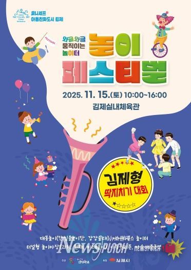 뉴스펀치 김길룡 기자 | 김제시는 아이들이 자유롭게 놀며 성장하는 아동친화도시 실현을 위해 오는 15일, 김제실내체육관 및 주차장 일대에서 와글와글 움직이는 놀이터,‘제2회 놀이페스티벌’행사를 개최한다고 밝혔다.