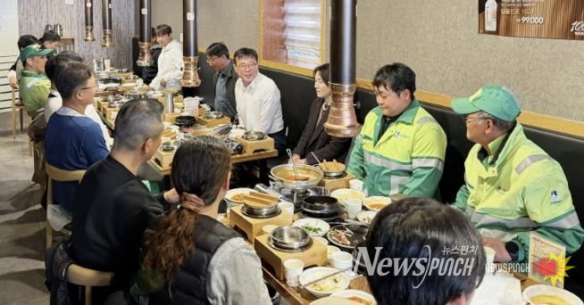 뉴스펀치 김길룡 기자 | 수원특례시 영통구는 지난 11월 10일 가을철을 맞아 낙엽 처리에 최선을 다하고 있는 환경관리원 격려 간담회를 개최했다.